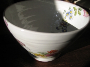 Koppen är rejäl, mått: ca 12 cm i diameter, höjd ca 9-10cm. Rymmer ca 4-5 dl.