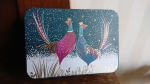 Platt skrin med fasanmotiv, matt finish och gulddetaljer. Design Sara Miller, London.