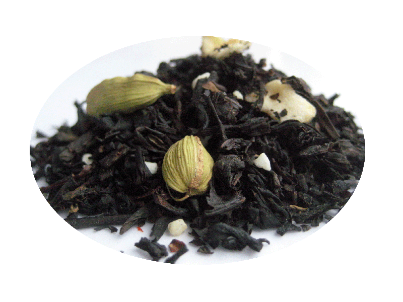Ingredienser: svart te, kardemummakapslar, torkade äpplebitar, pärlsocker och aromer.