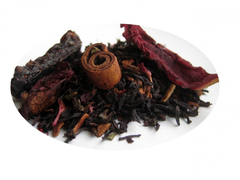 Ingredienser: svart te Kina, Ceylon, Rwanda, Vietnam Black OP, Darjeeling, kanelstänger, aromer och naturliga aromer, frystorkade plommon, rosblomsblad, rosaklint.